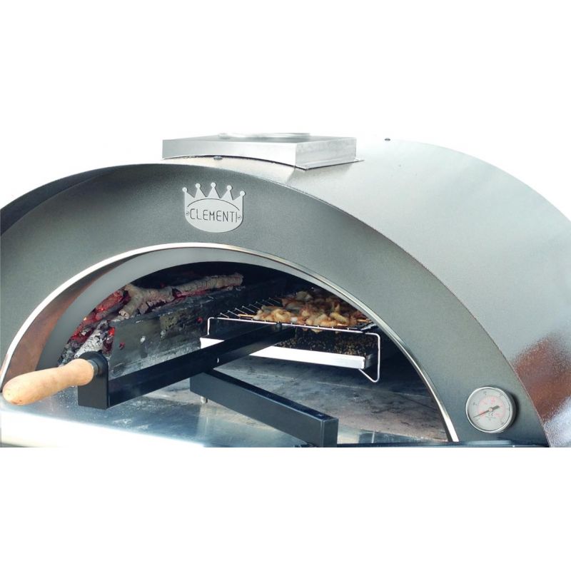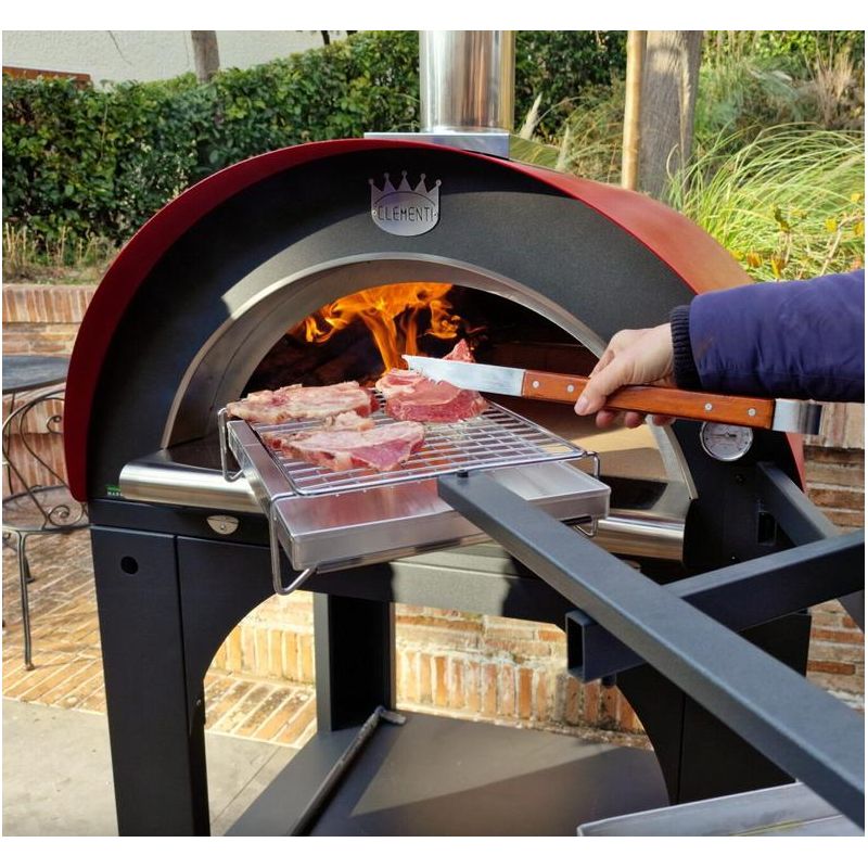 L'accessoire MulticookingGold CLEMENTI vous permet de transformer votre four à cuisson directe Clementi en un véritable barbecue où vous pourrez griller vos viandes, poissons ou légumes. Grâce au système de transfert de chaleur indirect fourni par la base en réfractaire et par l'acier de la voûte du four, d'excellents résultats peuvent être obtenus dans le plus grand respect de la cuisson de vos aliments. Le Multicooking CLEMENTI évite ainsi que les graisses tombent dans le feu et produisent des fumées nocives. Le bac de récupération des graisses intégré et pratique maintient la surface en réfractaire propre.