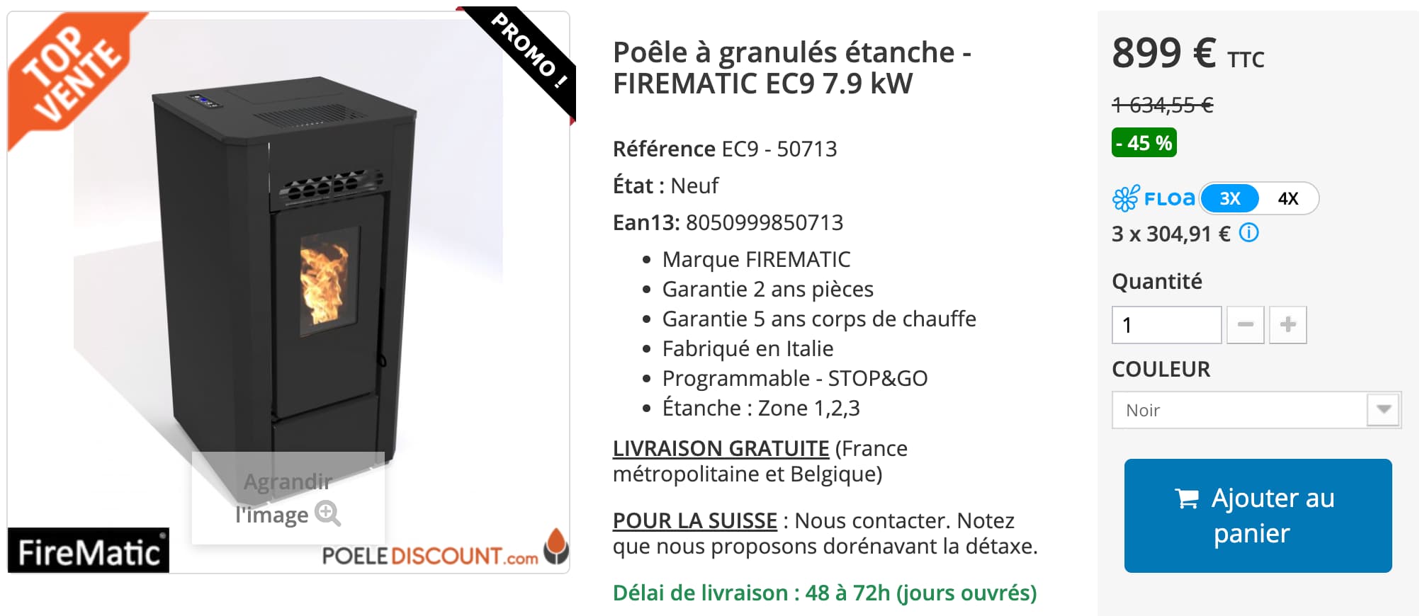 PoeleDiscount propose le paiement en 3, 4 ou 10 fois sans frais. Les stocks diminuent rapidement pendant ces soldes d'hiver 2026. Avec des remises exceptionnelles et une disponibilité immédiate, c'est le moment idéal pour passer au chauffage aux granulés. Ne tardez pas, car votre modèle préféré pourrait bientôt être en rupture de stock !
