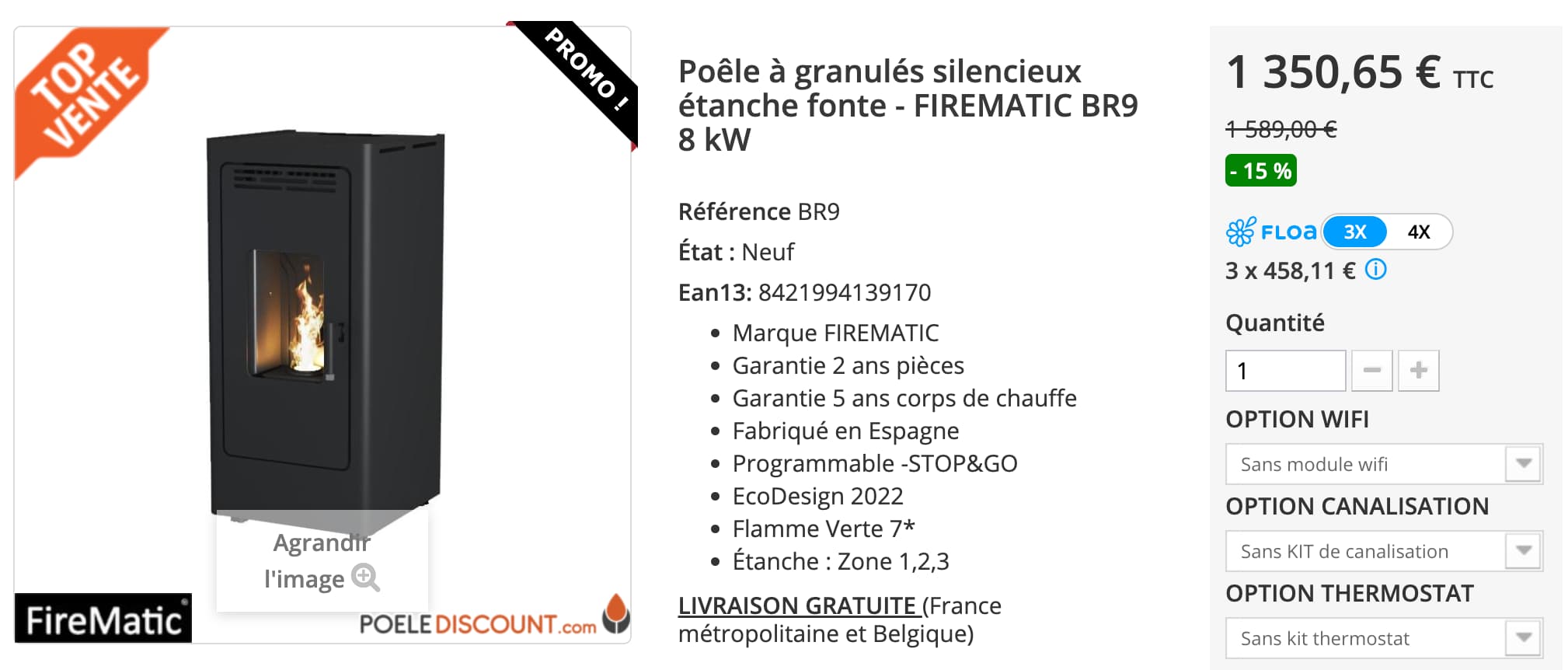 1. L'incontournable : poêle à granulés étanche Firematic EC9 (7,9 kW)