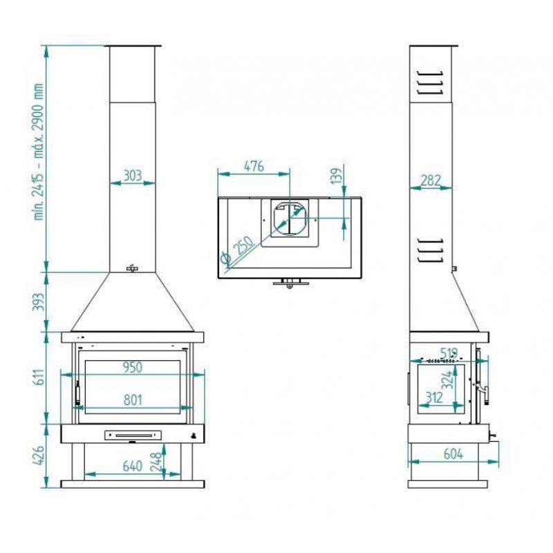 Cheminée à bois centrale 4 faces - BRONPI Huelva 15 kW