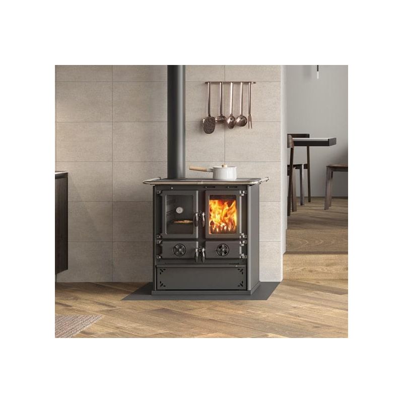 La cuisinière à bois Rosetta Sinistra.16 Steel de la marque LA NORDICA accepte des bûches jusqu’à 33 cm. L’intérêt principal d’une cuisinière à bois est d'assurer une fonction de cuisson mais aussi de chauffer votre maison.
