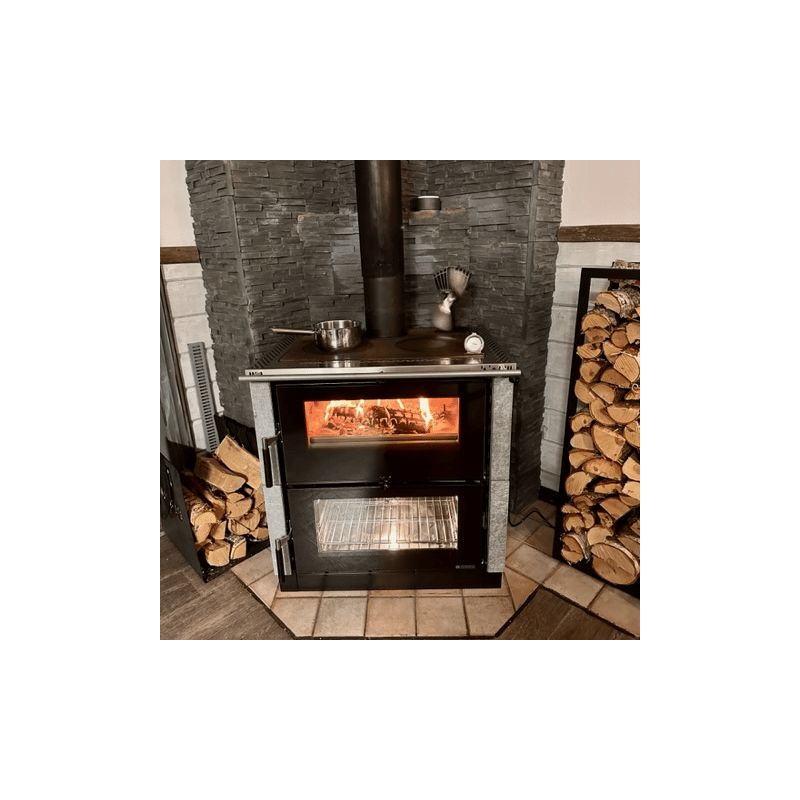 La cuisinière à bois Verona XXL.16 Petra 7 kW de la marque LA NORDICA à prix discount possède une puissance brûlé de 8 kW ainsi qu'un très bon rendement de 85 %. Pour concocter de succulents plats rien de mieux que la cuisinière au feu de bois. Cette appareil multifonction, vous permet à la fois de chauffer votre habitat mais aussi de cuire vos mets ! La cuisinière à bois garantie une chaleur enveloppante et confortable. La qualité de la combustion se gère en adaptant l’air comburant.
