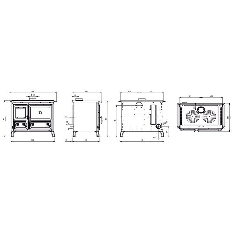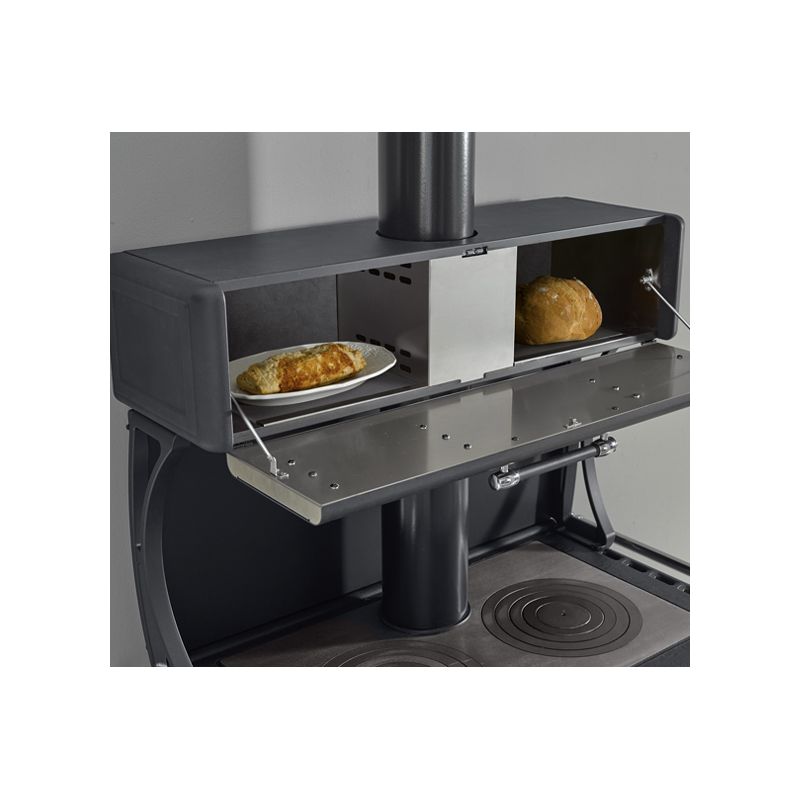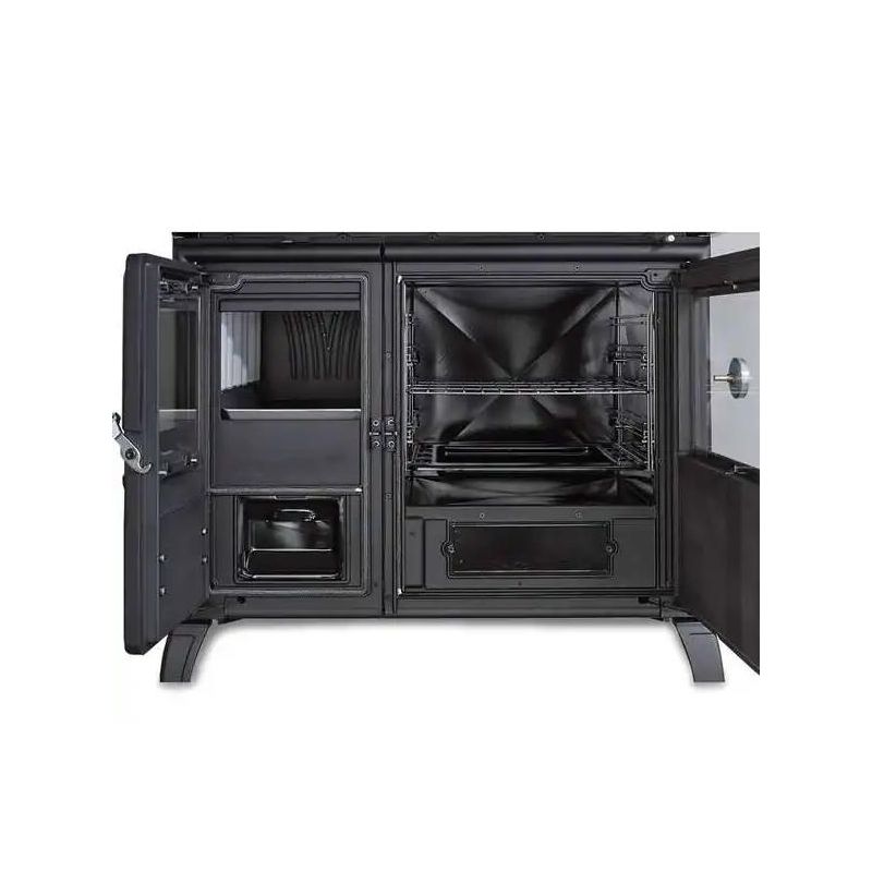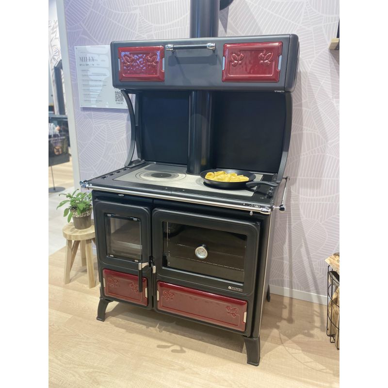 La cuisinière à bois Milly de la marque La Nordica vous offrira la possibilité de chauffer votre maison jusqu'à 250 m3 tout en retrouvant le plaisir de cuisinier au feu de bois grâce à son grand four émaillé de 78 Litres.
