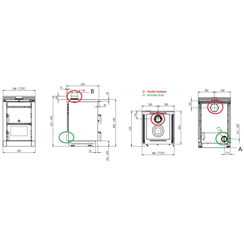 Ce modèle de cuisinière à bois vous offre la possibilité de prélever l'air comburant à l'extérieur du logement grâce à sa prise d'air BBC. De plus, vous pourrez installer cette cuisinière à bois en pose libre ou décider de l'encastrer car elle est prévue à cet effet.