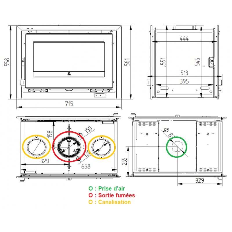 Insert à bois 3 faces ventilé - FIREMATIC Dali 12.6 kW