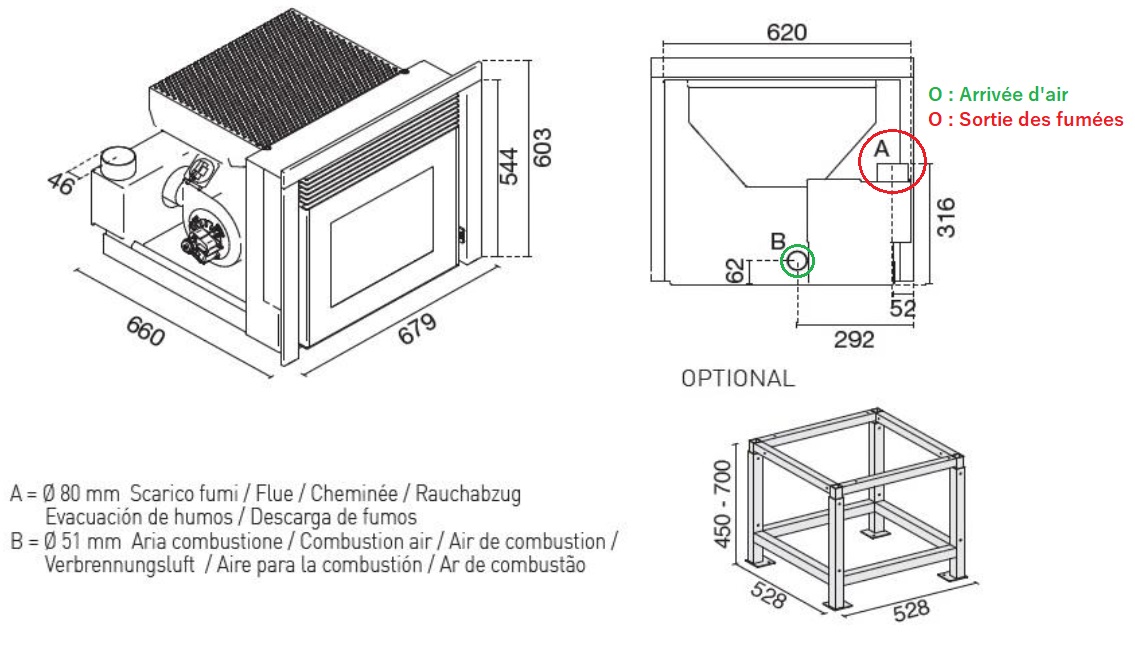 Insert à granulés ventilé - EXTRAFLAME Comfort P70 Air H49 5.0 8 kW