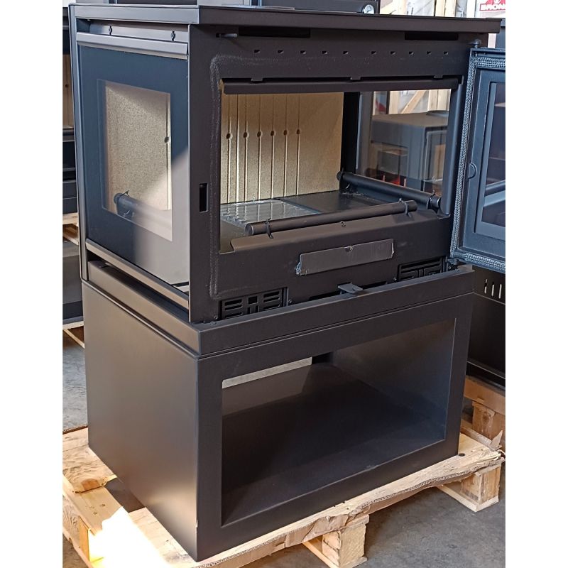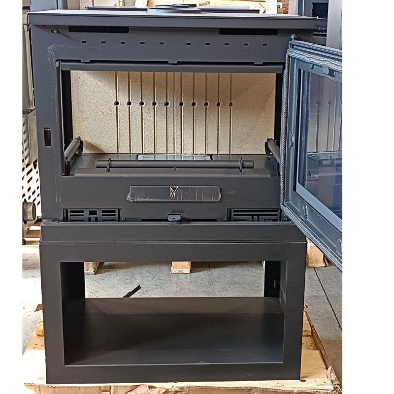 Il possède un système de double combustion ce qui lui permets d'atteindre facilement un rendement de 81%. La porte de ce modèle de poêle est entièrement en fonte, ainsi que la grille foyère.