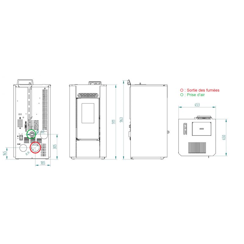 PACK Poêle à granulés canalisable C9C FIREMATIC + Kit ventouse Dinak