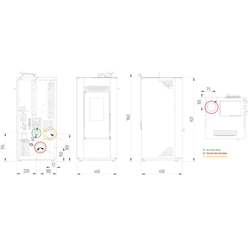Ce poêle à pellets est étanche et permet une installation en sortie ventouse/façade, sortie toiture ou en sortie toiture à plus de 40cm du faîtage. De plus, ce poêle à pellets possède une sortie canalisable à l'arrière, ce qui vous permettra de le raccorder au besoin afin de chauffer une pièce secondaire comme un bureau ou bien une chambre.