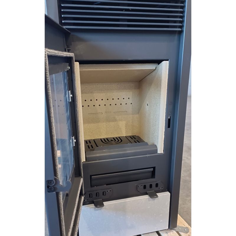 Ce produit possède un système de double combustion ce qui améliore son rendement. L'avantage de ce poêle mixte, est qu'il est capable de fonctionner sans électricité lorsqu'il fonctionne en mode bois.