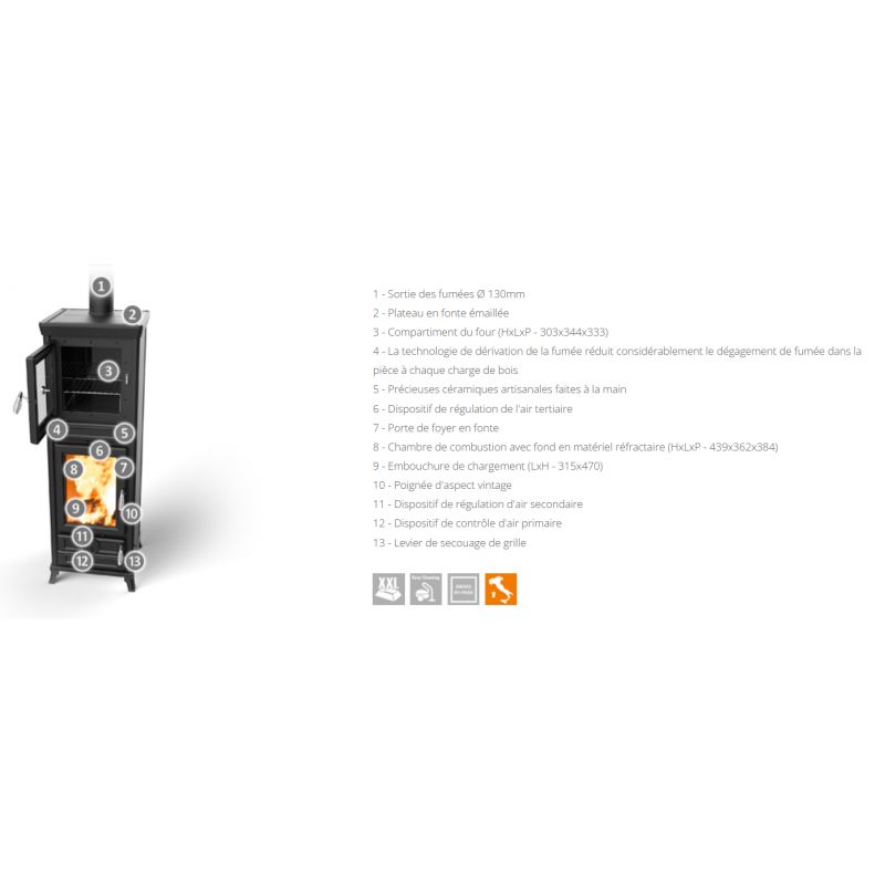 Poêle à bois avec four en fonte - THERMOROSSI Anna Evo5 Easy 12.5 kW
