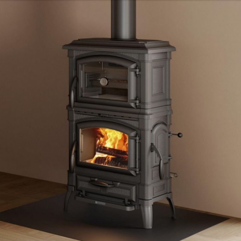 Le poêle à bois en fonte avec four Isetta Forno 8,2 kW de La Nordica allie charme traditionnel, performance de chauffe et plaisir de cuisson. Sa structure en fonte lui confère une excellente robustesse ainsi qu’une diffusion de chaleur homogène et durable. Équipé d’un four de 22 L il permet de chauffer efficacement jusqu’à 235 m³ tout en offrant un véritable espace de cuisson. Avec son rendement de 86 %, l’Isetta Forno constitue une solution à la fois élégante, performante et conviviale pour la maison.