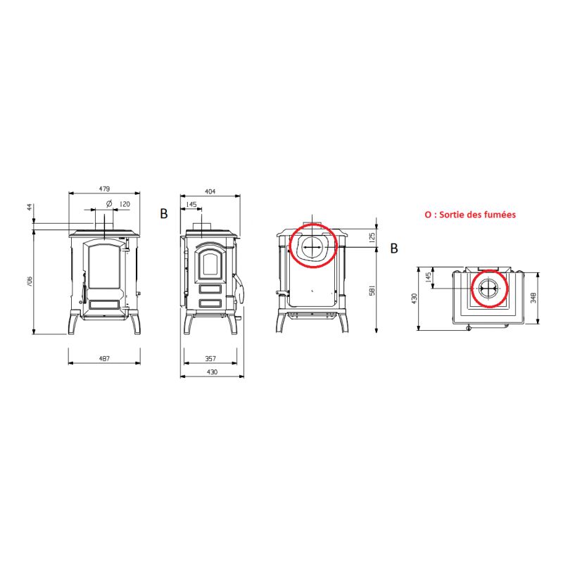 Poêle à bois en fonte 3 faces - BRONPI Bury 14 kW