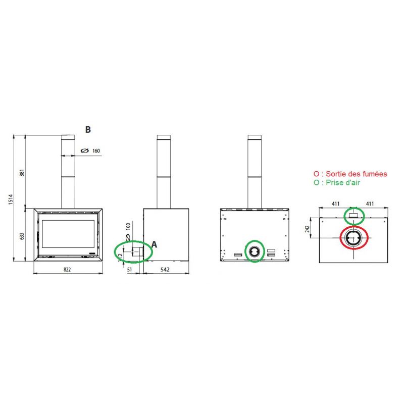 Poêle à bois suspendu raccordable ventilé 3 faces - BRONPI Versailles - C 10 kW