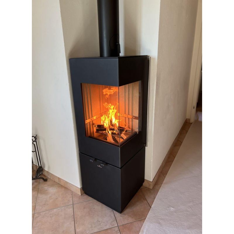 Poêle à bois suspendu, pose libre, sur pieds ou avec bûcher - BRONPI Cairo 70 Box 12 kW