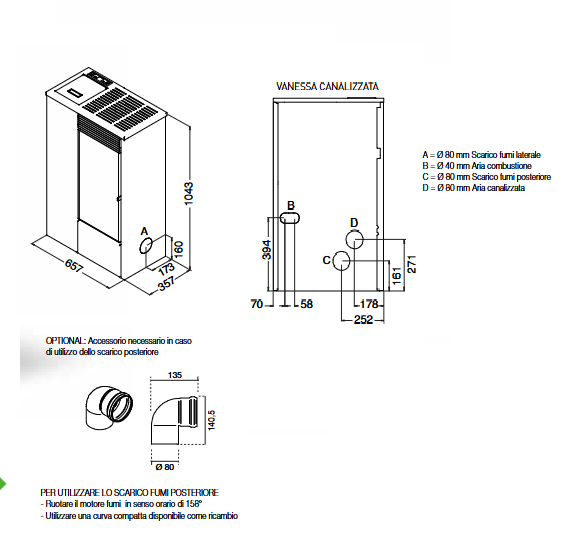 PACK Poêle à granulés étanche fonte BR12 + Kit ventouse Dinak
