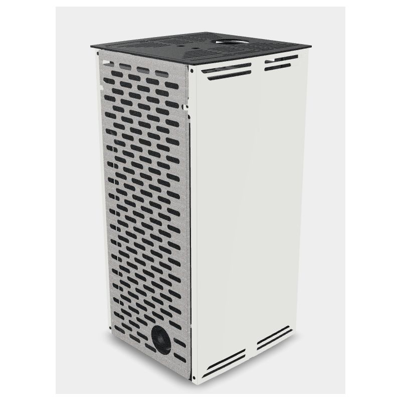 DOUBLE CHAMBRE : Espace entre la chambre de combustion et la surface externe du poêle pour réduire la température en surface.