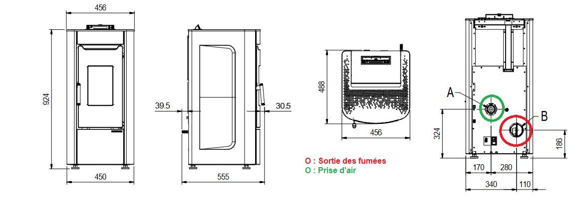 Poêle à granules étanche - ORIGINE PHEBO Aurora - H 9.1 kW