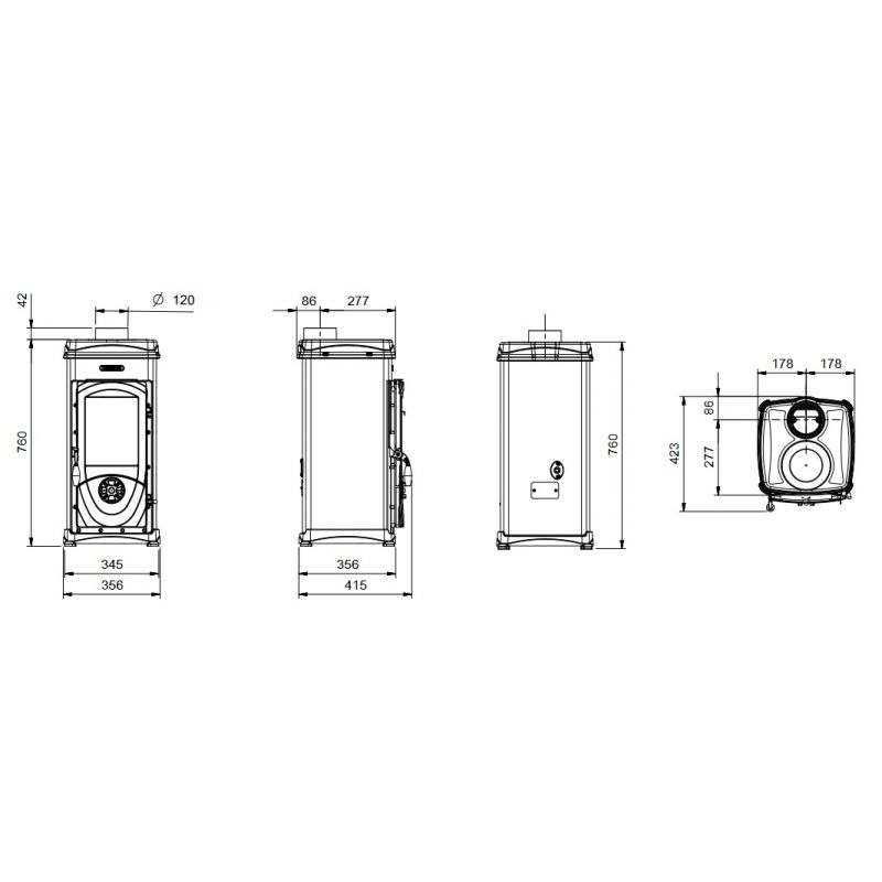 Poêle à bois 3 faces ventilé pose libre - BRONPI Bimba 90 3C 13 kW