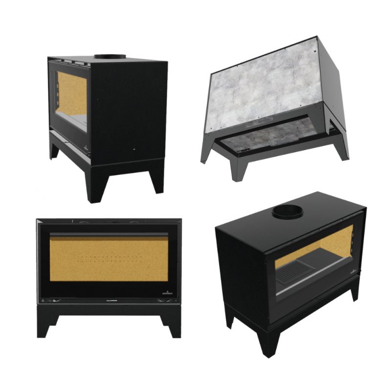 Poêle à bois moderne pose libre, suspendu ou avec bûcher - BRONPI Cairo 1103C Box 13 kW