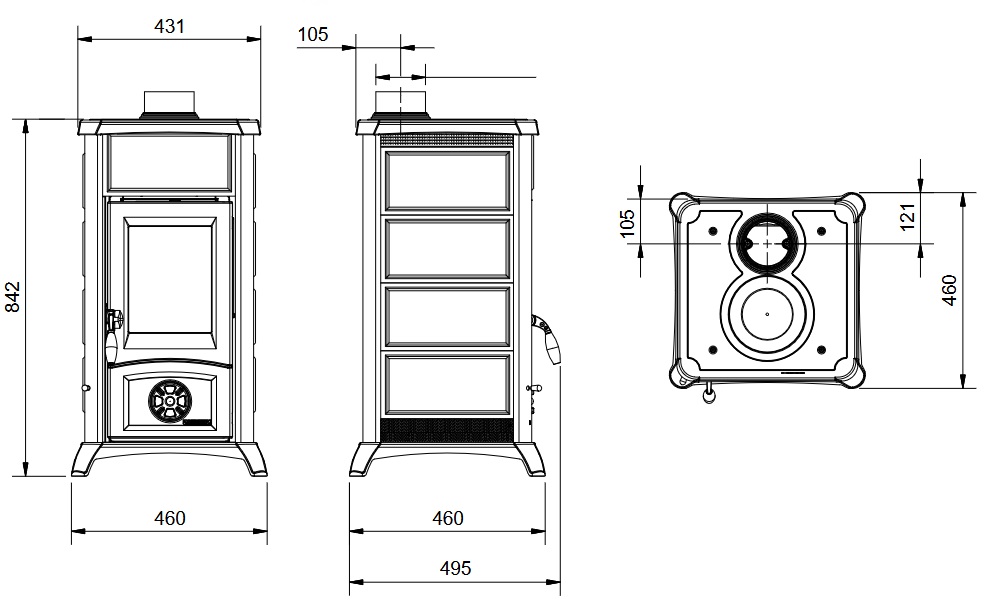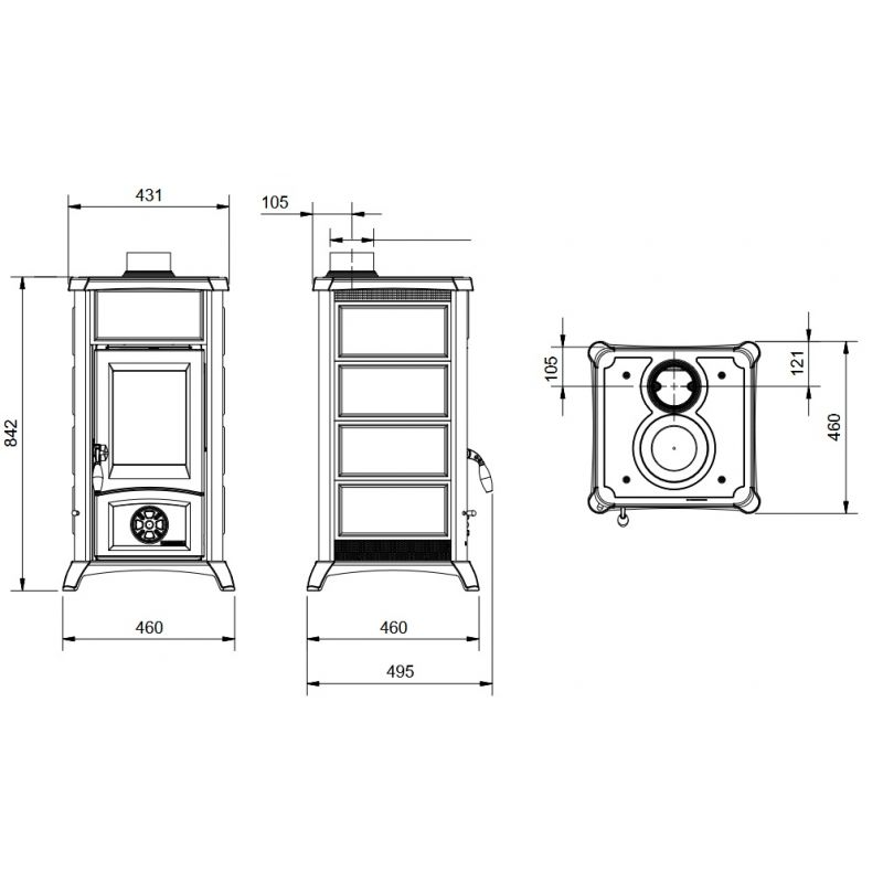 Poêle à bois 3 faces ventilé avec pieds - BRONPI Bimba 90 3C 13 kW