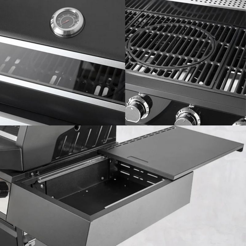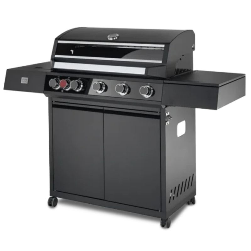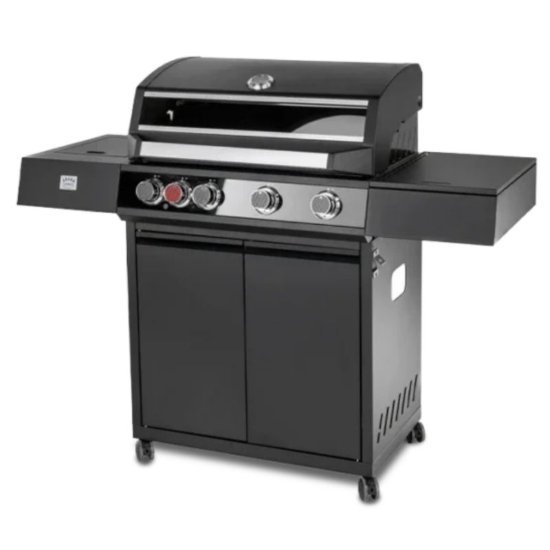 Le barbecue Aria de la marque CLEMENTI est équipé de 4 ou 5 brûleurs inox de 3,3 kW au choix pour une chaleur homogène sur toute la surface de cuisson. Compact, élégant et performant, il dispose d’un couvercle isolé avec vitre et thermomètre, de grilles en fonte émaillée, d’un allumage piézoélectrique rapide, d’un chariot porte-bouteille et de 4 roulettes pour une mobilité optimale.
