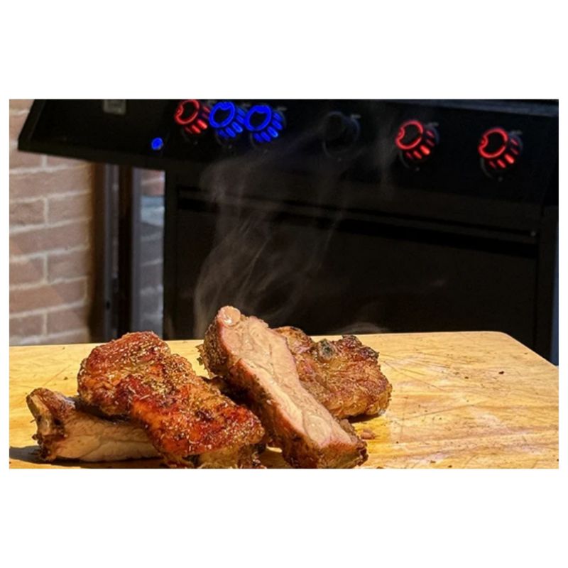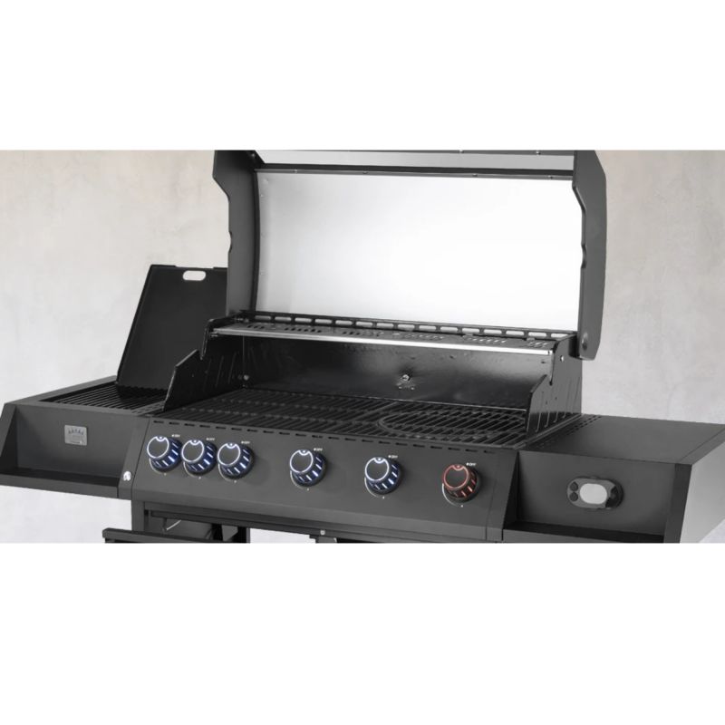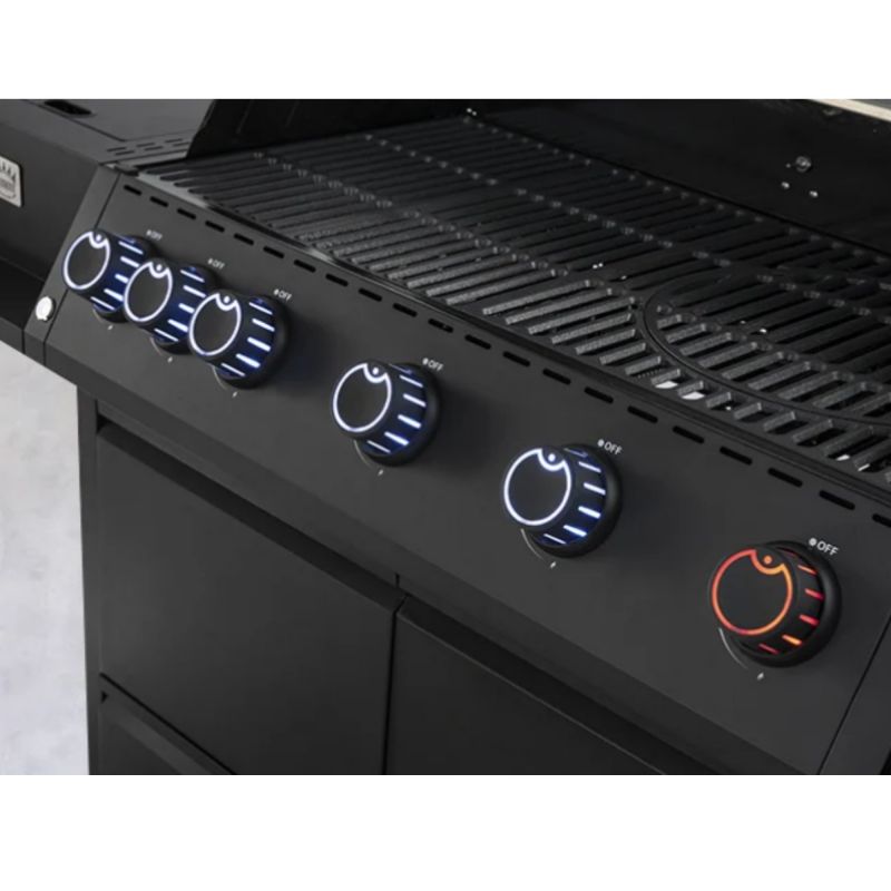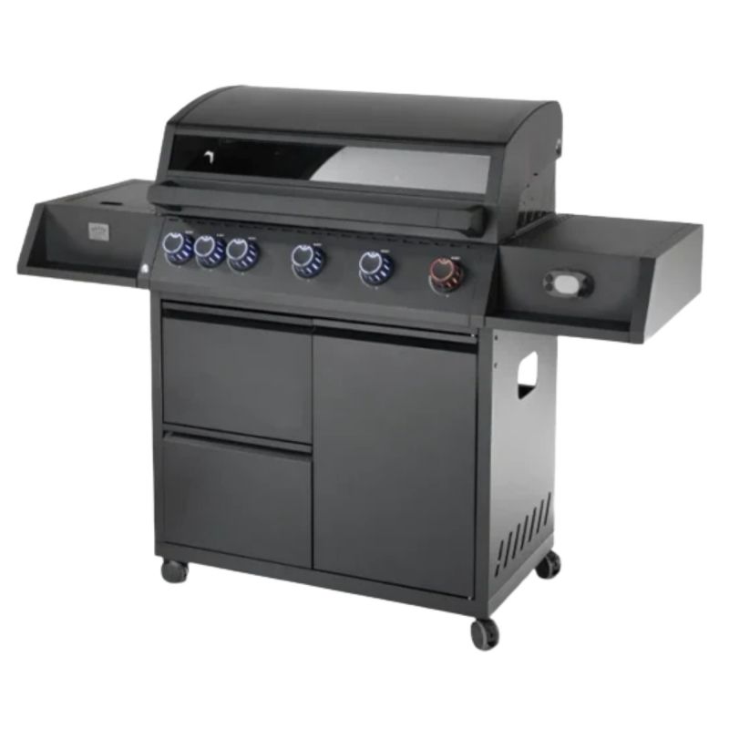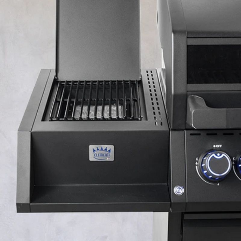Le barbecue à gaz Terra CLEMENTI 5 brûleurs monte clairement en gamme avec son thermomètre digital, ses 5 brûleurs de série, sa fonction fumoir et ses boutons de réglage avec éclairage LED pour un pilotage plus précis et plus moderne. Complet, il est pensé pour ceux qui veulent une expérience de cuisson extérieure haut de gamme et polyvalente.